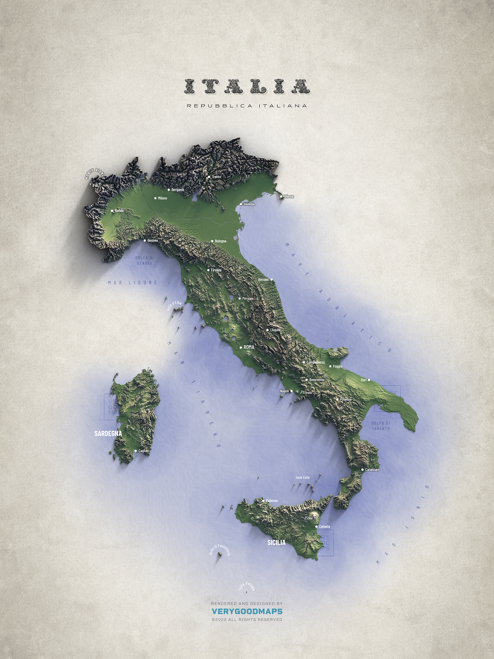 verygoodmaps on X: “Italy, exaggerated topography. This one is