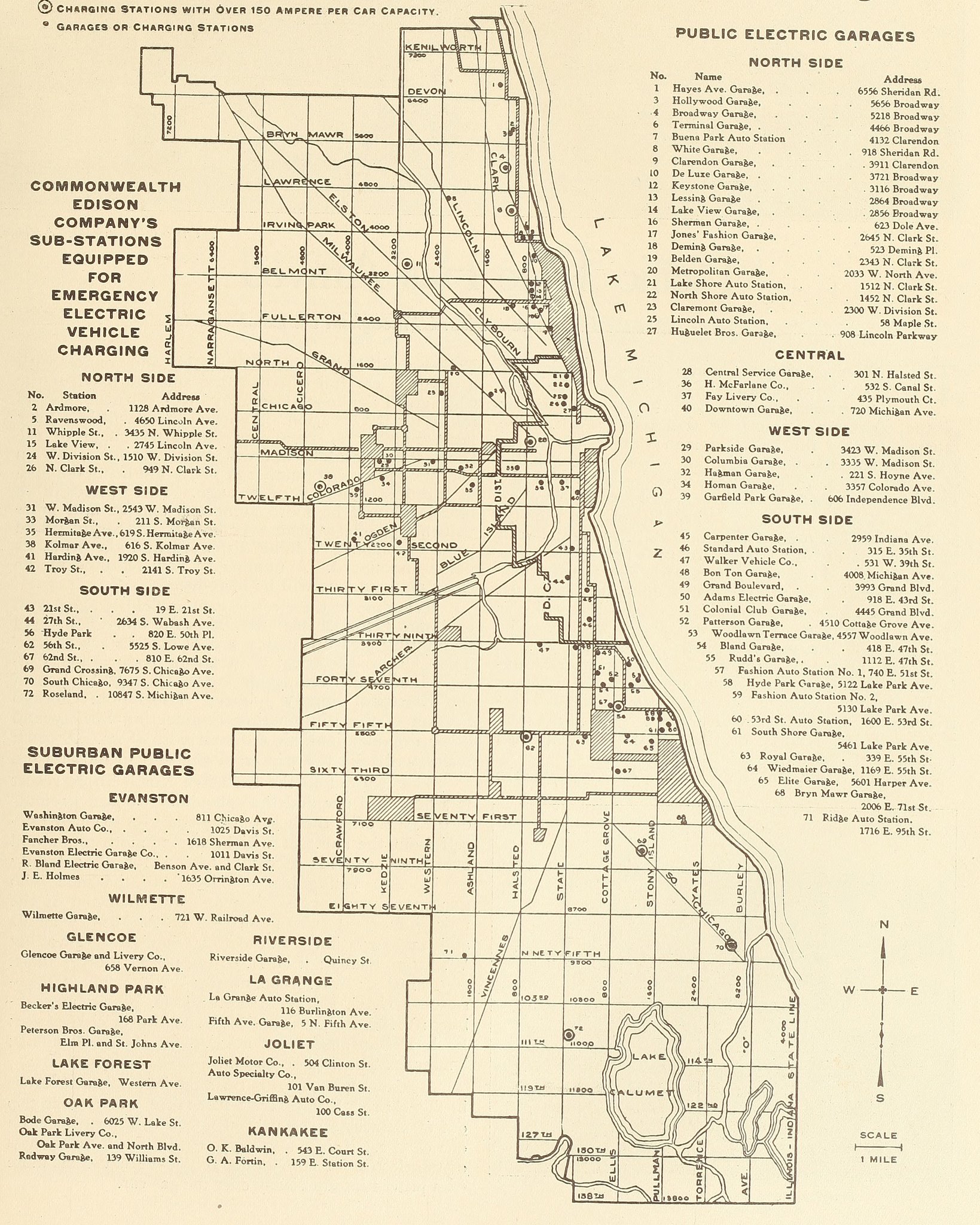 Map of Electric Vehicle Garage and Charging Stations in 1915