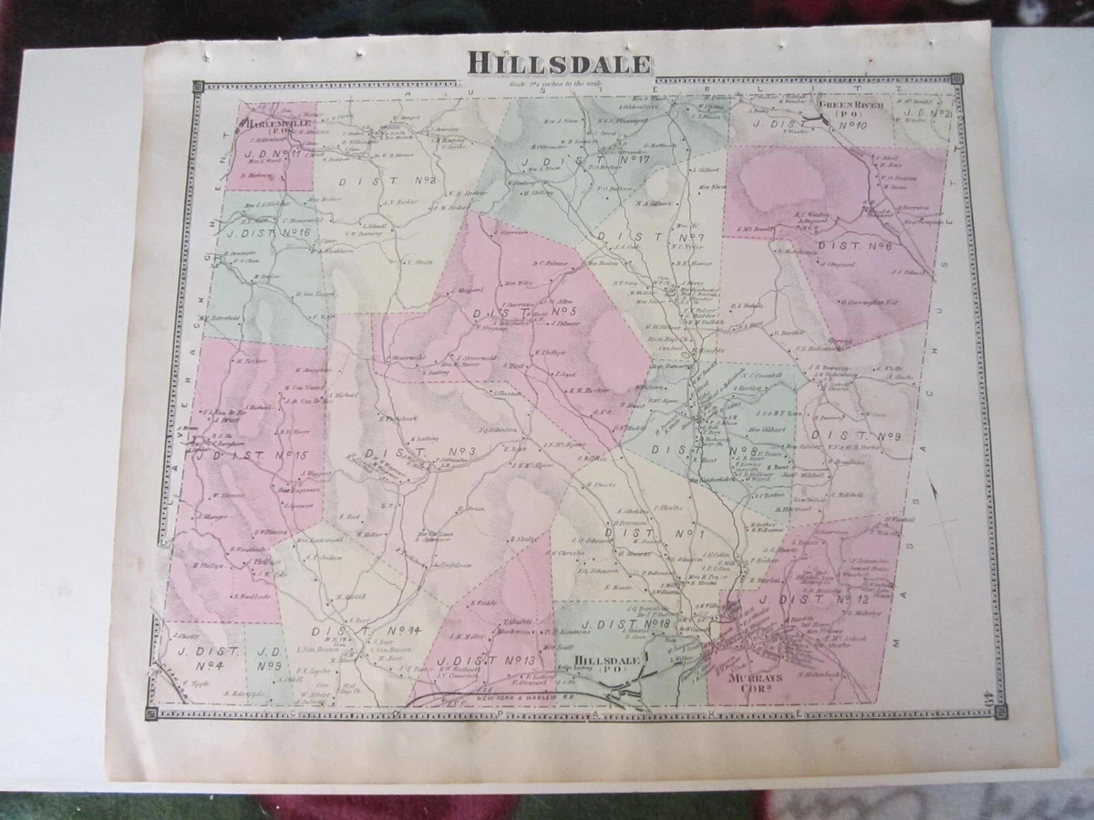 HILLSDALE, NEW YORK (COLUMBIA COUNTY) ORIGINAL 1873 HAND COLORED