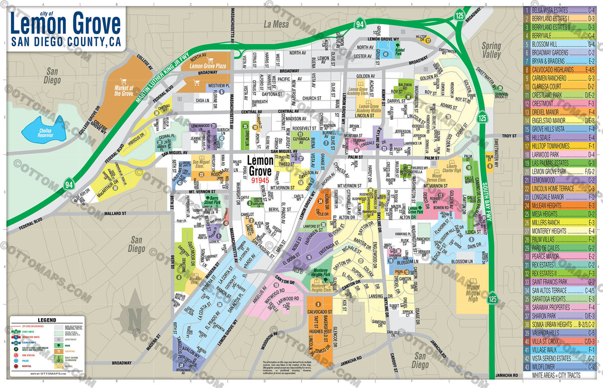 Lemon Grove Map, San Diego County, CA โ Otto Maps