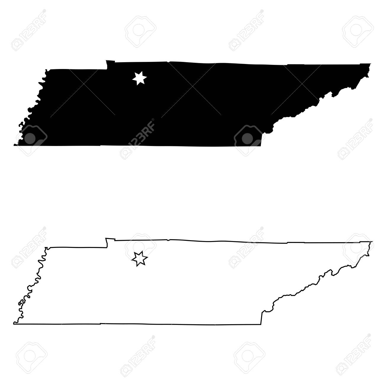 Tennessee TN State Map USA With Capital City Star At Nashville