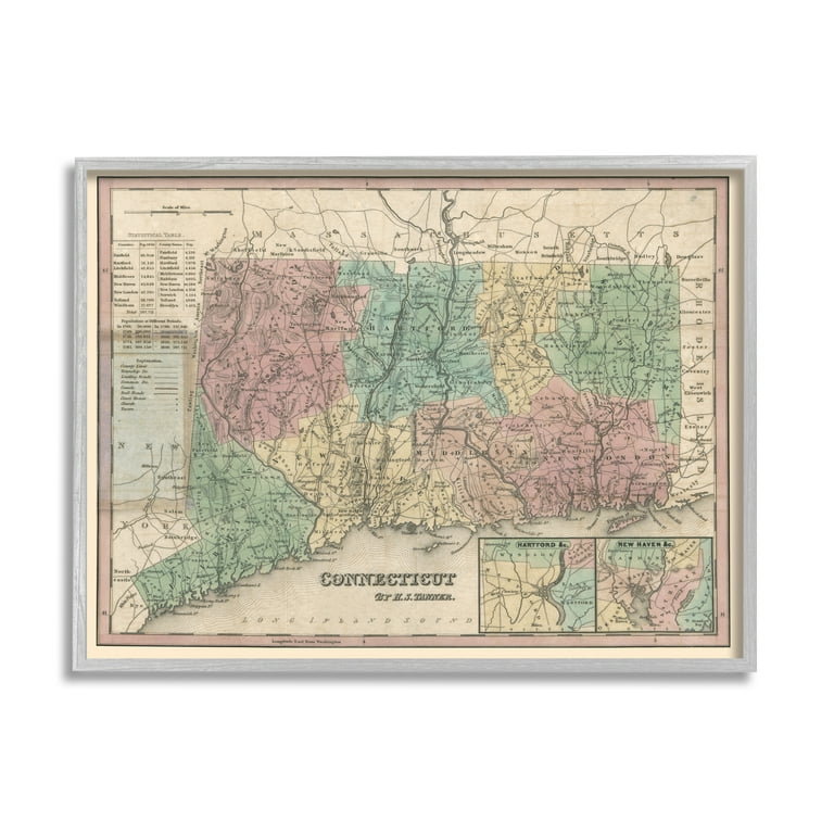 Stupell Industries Vintage Connecticut US State Map Town Region