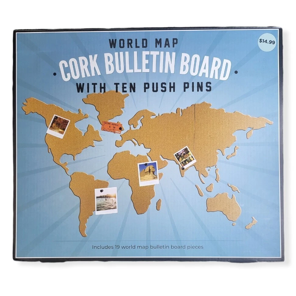 World Map Cork Bulletin Board Notes Reminders Photos With Push