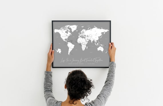 Personalized World Map Poster Couples Travel Map Print Wedding